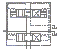 그림은 4포트 전자 파일럿 전환밸브의 상세 기호이다. 이것을 간략 기호로 나타낸 것은?