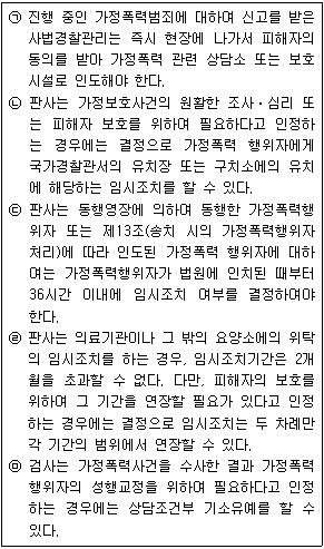 다음 「가정폭력범죄의 처벌 등에 관한 특례법」에 대한 내용 중 적절하지 않은 것만을 고른 것은 모두 몇 개인가?