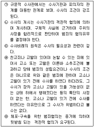 수사의 조건에 대한 설명으로 적절하지 않은 것을 모두 고른 것은?(다툼이 있는 경우 판례에 의함)