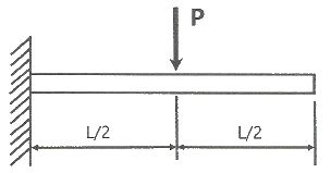 그림과 같이 외팔보의 중앙에 집중하중 P가 작용하는 경우 집중하중 P가 작용하는 지점에서의 처짐은? (단, 보의 굽힘강성 EI는 일정하고, L은 보의 전체의 길이이다.)