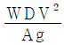 지름 D인 두께가 얇은 링(ring)을 수평면 내에서 회전 시킬 때, 링에 생기는 인장응력을 나타내는 식은? (단, 링의 단위 길이에 대한 무게를 W, 링의 원주속도를 V, 링의 단면적을 A, 중력가속도를 g로 한다.)