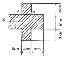 그림과 같은 단면을 가진 외팔보가 있다. 그 단면의 자유단에 전단력 V = 40kN이 발생한다면 단면 a-b 위에 발생하는 전단응력은 약 몇 MPa 인가?