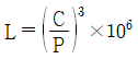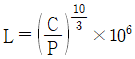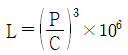 롤러 베어링에서 기본정격수명을 L(rev), 베어링의 기본 동정격하중을 C(N), 베어링에 발생하는 동등가하중을 P(N)라 할 때 이에 대한 관계식으로 옳은 것은?