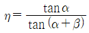 나사의 리드 각을 α, 마찰각을 β라 할 때 나사의 효율 η를 구하는 식은?
