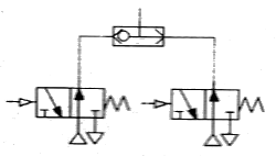 그림과 같은 공압 회로는 어떤 논리를 나타내는가?