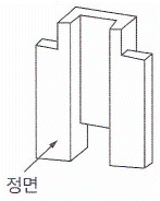 그림과 같은 입체도에서 화살표 방향을 정면으로 할 때 좌측면도로 옳은 것은? (단, 정면도에서 좌우 대칭이다.)