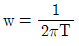 인파 교류 파형에서 주기 T[s], 주파수 f[Hz]와 각 속도 w[rad/s] 사이의 관계식을 바르게 표기한 것은?