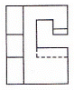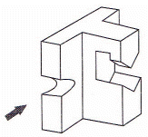 다음의 입체도를 제3각법으로 나타낼 때 정면도로 올바른 것은? (단, 화살표 방향이 정면이다.)