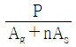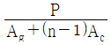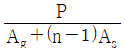 철근콘크리트 부재에 압축력 P가 편심 없이 작용할 때, 콘크리트에 작용하는 응력 fc는? (단, 부재는 탄성거동 범위 내에 있으며, 압축력은 장기하중이 아닌 단기하중으로 작용하고 있고, Ag는 전체 단면적, Ac는 콘크리트의 단면적, As는 축방향 철근의 단면적, n은 철근과 콘크리트의 탄성계수비 (Es/Ec)이다)