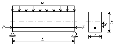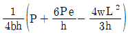 그림과 같은 단순보에 e만큼 편심된 프리스트레스 힘 P가 작용하고 있다. 등분포하중 w가 작용할 때 보 지간 중앙단면에서의 하연응력은? (단, 보의 자중은 무시하고, 깊은 보의 비선형 변형률 분포는 고려하지 않는다)