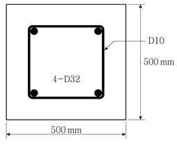 그림과 같은 압축부재에 사용되는 띠철근기둥에서 띠철근의 최대 수직간격[mm]은? (단, D10 철근의 공칭지름은 10mm, D32 철근의 공칭지름은 32mm로 가정한다)