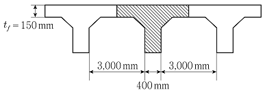 그림과 같이 슬래브와 보를 일체로 타설한 경간이 20m인 단순지지된 철근콘크리트 보가 있다. 빗금친 T형 단면에 대한 내용으로 옳은 것은? (단, 콘크리트구조 해석과 설계 원칙(KDS 14 20 10: 2016)을 따른다)