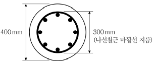 그림과 같은 단면을 갖는 나선철근 기둥의 최소 나선철근비[%]는? (단, 나선철근의 설계기준항복강도 fyt=500MPa, 콘크리트의 설계기준압축강도 fck=25MPa, KDS 14 20 20 : 2021을 따른다)