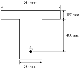 그림과 같은 T형 보에 정모멘트가 작용할 때, 등가 직사각형 압축응력블록을 사용하여 계산한 단면의 공칭휨강도 Mn[kN⋅m]은? (단, 콘크리트의 설계기준압축강도 fck=20MPa, 철근의 설계 기준항복강도 fy=400MPa, 인장철근 단면적 As=3,400 mm2, KDS 14 20 20 : 2021을 따른다)