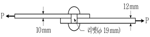 그림과 같은 리벳 접합의 허용전단력[kN]은? (단, 리벳의 허용전단응력은 120MPa, 허용지압응력은 170MPa이다)