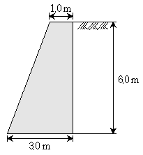 그림과 같은 중력식 옹벽의 전도에 대한 안전율은? (단, 콘크리트의 단위중량 γc=25kN/m3, 흙의 내부마찰각 ø=30°, 점착력 c=0, 흙의 단위중량 γs=20kN/m3, 옹벽 전면에 작용하는 수동토압은 무시하며, KDS(2016) 설계기준을 적용한다)