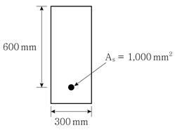폭이 300mm, 인장철근량 As=1,000mm2, 유효높이가 600mm인 단철근 직사각형보에서 철근의 응력(fy)이 300MPa일 때, 콘크리트 총압축력[kN]은?
