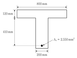 그림과 같은 단철근 T형 보가 있다. 이 단면의 공칭휨강도[kNㆍm]는? (단, 콘크리트의 설계기준압축강도 fck는 25MPa, 철근의 설계기준항복강도 fy는 400MPa이다)