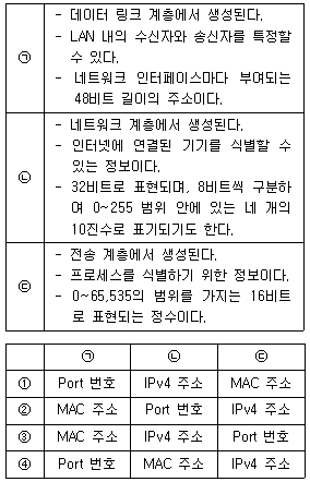다음에서 ㉠~㉢에 해당하는 내용으로 모두 옳은 것은?