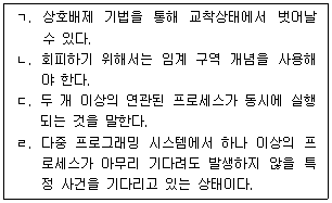 교착상태(dead lock)에 관한 설명으로 옳은 것만을 <보기>에서 있는 대로 고른 것은?
