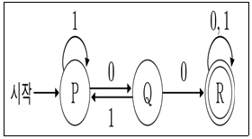 다음 오토마타에서 인식할 수 있는 문자열로 옳지 않은 것은?