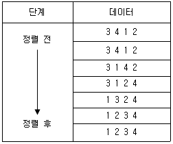 다음 데이터 정렬에 사용된 알고리즘으로 옳은 것은?