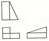 그림과 같이 제 3각법 으로 정투상한 도면에 적합한 입체도는?