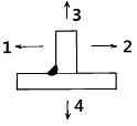 다음 [그림]과 같이 필릿용접을 하였을 때 어느 방향으로 변형이 가장 크게 나타나는가?
