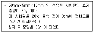 다음 조건에서 섬유판의 수분흡수율은?