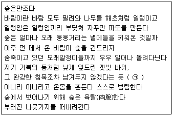 <보기> 작품의 전체 맥락을 고려할 때 ㉠에 들어갈 구절로 가장 적절한 것은?