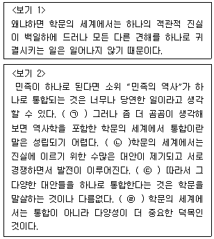 <보기 1>을 <보기 2>에 삽입하려고 할 때 문맥상 가장 적절한 곳은?