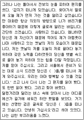 <보기>는 어떤 소설의 마지막 부분이다. 괄호 안에 들어 갈 소설 속 지명은?