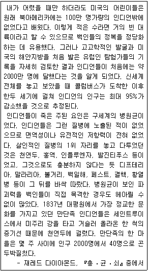 인디언들은 구세계의 병원균에 대한 면역성이 없었다.