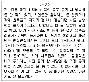 <보기>의 ( ) 안에 들어갈 가장 알맞은 말을 차례로 나열한 것은? (순서대로 ㉠, ㉡)