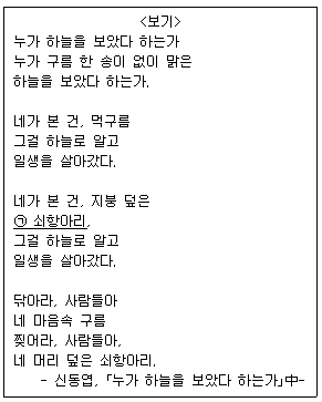 밑줄 친 부분이 <보기>의 ㉠ ‘쇠항아리’와 의미가 통하는 시어로 가장 적절한 것은?
