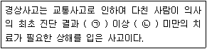 다음은 「교통안전법 시행령」상 교통사고의 종류 중 경상 사고에 대한 설명이다. ㉠, ㉡에 들어갈 내용으로 옳은 것은?