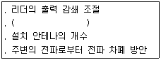 RFID 시스템 설치 시 고려되어야 할 사항 중 하나가 RF 영역 결정이다. 다음은 RF 영역을 결정하기 위해서 설치 시 고려되어야 할 항목들이다. 괄호안의 나머지 사항은?