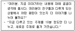 다음 청소년 집단상담 장면에서 상담자가 공통으로 사용한 기술은?