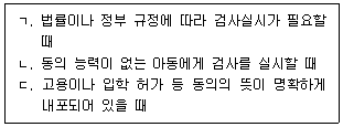 수검자나 수검자의 법적 대리인으로부터 '동의'가 필요하지 않은 경우를 모두 고른 것은?