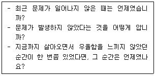 해결중심상담에서 사용하는 질문기법 중 다음에 해당하는 것은?