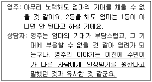 청소년 집단상담에서 밑줄 친 상담자 반응으로 옳은 것은?