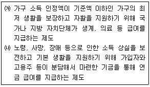 <보기>의 ㈎와 ㈏가 각각 나타내는 사회 보장 제도의 일반적인 특징에 대한 설명으로 가장 옳은 것은?