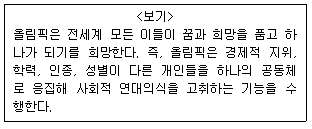 <보기>의 올림픽을 바라보는 관점이 가지는 일반적인 특징에 대한 설명으로 가장 옳은 것은?