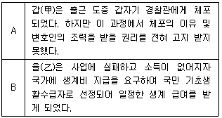 <보기>의 사례와 관련된 기본권의 유형 A, B에 대한 설명으로 가장 옳은 것은?
