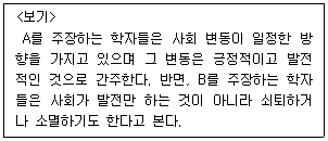 <보기>에서 사회 변동 방향에 대한 관점 A, B에 대한 설명으로 가장 옳은 것은?