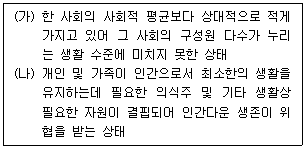 <보기>에서 빈곤의 유형 (가), (나)에 대한 설명으로 가장 옳은 것은?