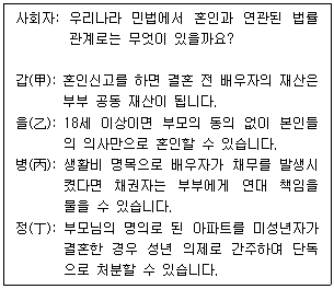 <보기>에서 사회자의 질의에 가장 옳게 응답한 인물은?