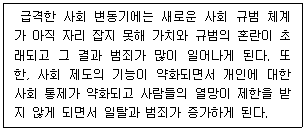 일탈 행동을 줄이기 위해서는 문화적 목표 달성을 위한 제도적 수단의 확대가 필요하다고 본다.