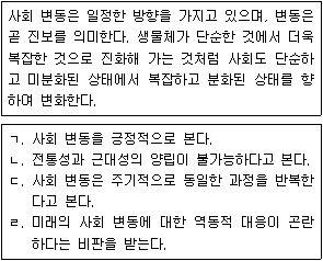 <보기 1>에 나타난 사회 변동을 바라보는 관점에 대한 옳은 설명을 <보기 2>에서 모두 고른 것은?