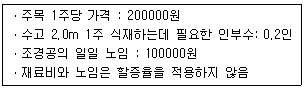 수고 2.0m인 주목 15주를 인력시공으로 식재할 때의 공사비는?